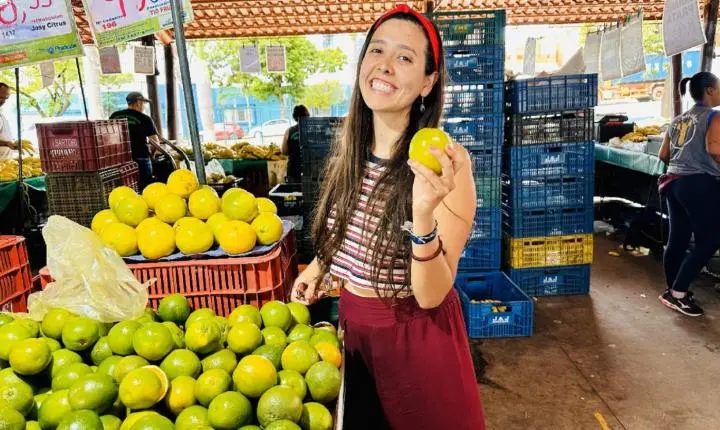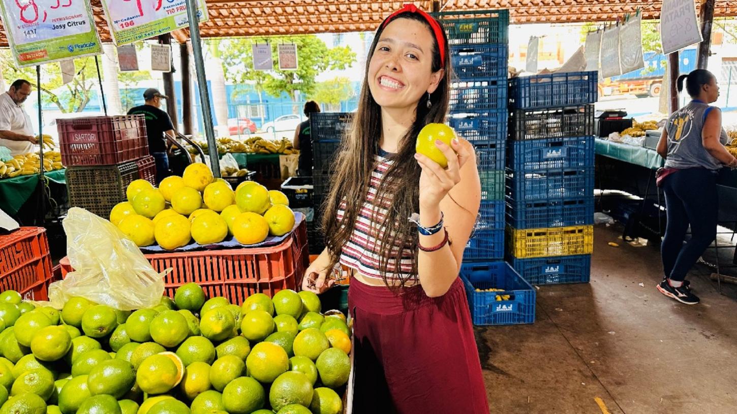 ELOGIO – Não escondendo a admiração de poder estar pela primeira vez no Brasil conhecendo um varejão municipal, Ana Maria Quiroga, 28 anos, colombiana, estudante do 3º ano na Universidade Laval, em Quebec, no Canadá, onde cursa doutorado em Biologia Vegetal, diz que é muito interessante o modo de comercialização que é feito no varejão, onde a qualidade e variedade de produtos são enormes e os preços são acessíveis. "Estou muito feliz em conhecer essa nova dinâmica de comercialização de produtos hortifrutigranjeiros. Considero uma política pública que merece ser adotada em outros países. No meu país tem mercadinhos, mas que nem de perto se parecem com varejões. Vou levar essa experiência para compartilhar o conhecimento com os demais colegas da Universidade em que estudo", ressaltou.